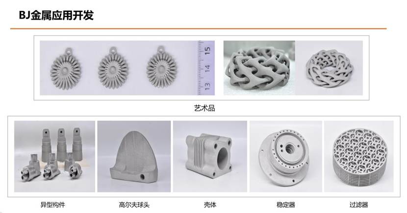 國際大廠看好BJ技術(shù)的市場潛力,紛紛入局。GE通用電氣自2016年開始布局BJ技術(shù),后旗下Colibrium Additive推出Series 3金屬粘結(jié)劑噴射系統(tǒng)。與汽車制造商合作生產(chǎn)輕量化、高性能的汽車零部件,提升整車性能。HP惠普基于熱噴墨(TIJ)專業(yè)經(jīng)驗,于2018年推出HP Metal Jet技術(shù),并在4年后推出HP Metal Jet S100金屬打印解決方案。GKN Additive采用HP Metal Jet技術(shù)進行汽車和工業(yè)零部件的批量生產(chǎn),MIM行業(yè)領(lǐng)導(dǎo)者Parmatech采用HP Metal Jet技術(shù)用于復(fù)雜形狀的精密手術(shù)工具的制造。